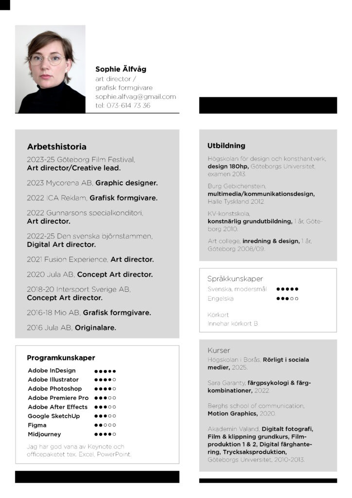 Jag är också en erfaren grafisk producent som har lätt att förstå och läsa av en grafisk profil och kan anpassa och producera innehåll baserat på ramar och regler som redan finns.